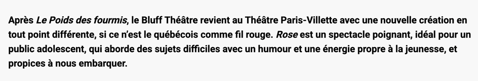 Sans complaisance, la pièce cherche à brosser un tableau juste et nécessaire de la souffrance psychologique qui nous habite parfois dans cette étape cruciale de notre vie. Mais surtout, avec empathie, s’elle engage sur le chemin de la guérison.