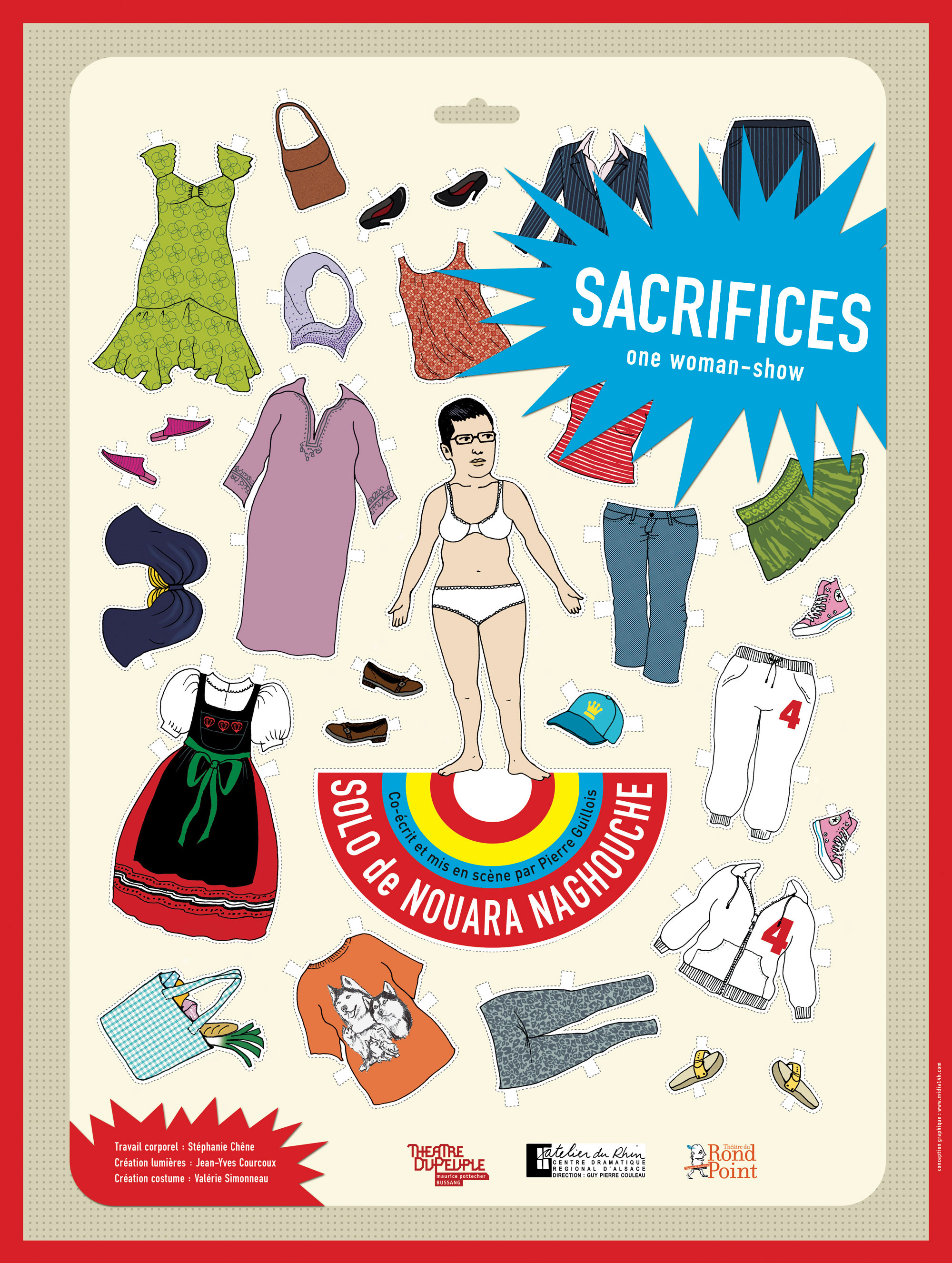 Pure AA (Alsacienne Algérienne), habitante d’un quartier défavorisé de Colmar, Nouara Naghouche parle au nom de ces quelques unes humbles et soumises à qui la vie n’a laissé que peu de place. Les mariages forcés, le machisme exacerbé, le racisme… Elle raconte la violence au quotidien avec les mots justes. Sans concessions, elle gratte là où ça fait mal et n’épargne personne. Sans jamais tomber dans le pathos, avec humour, avec amour, Sacrifices rend un hommage aux femmes, à toutes les femmes.